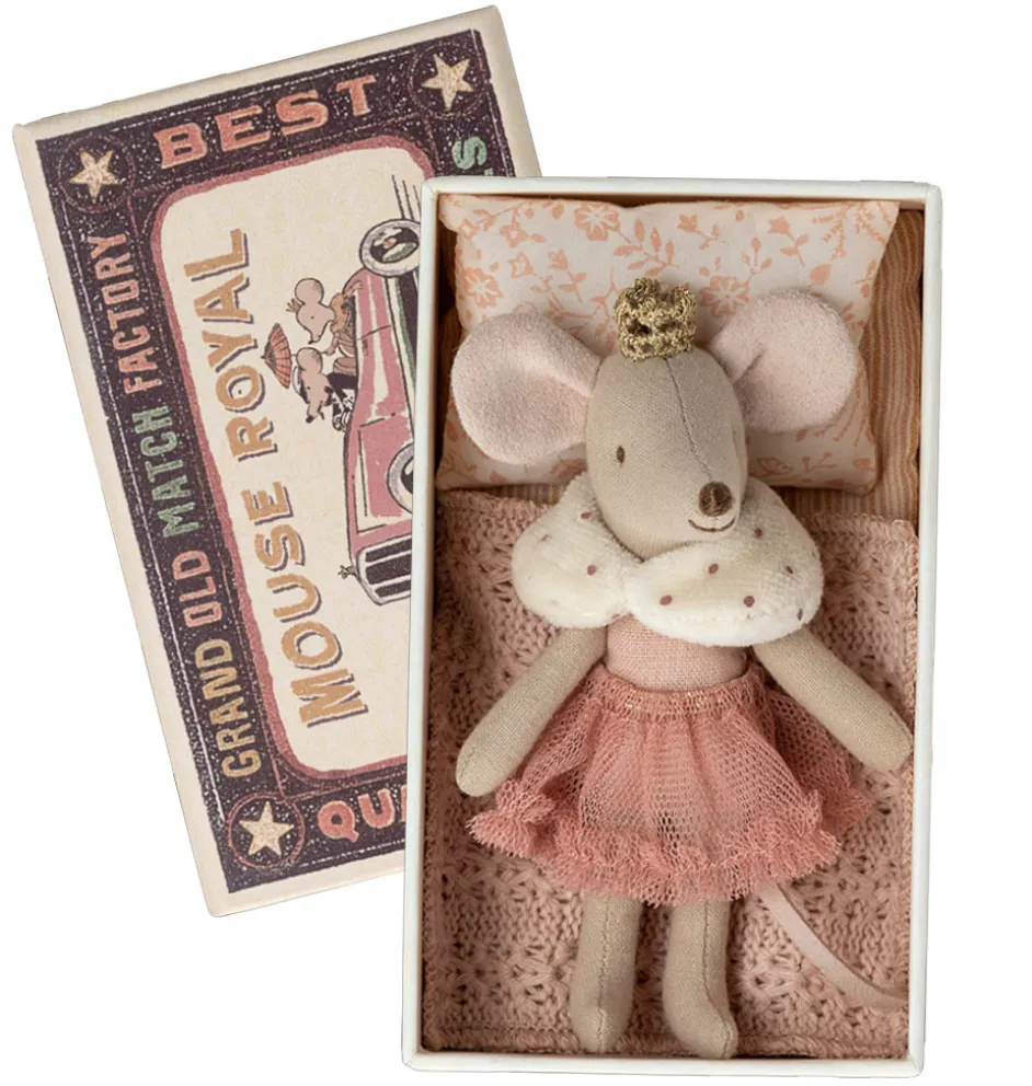 Mouse Royal / Little Sister Mausprinzessin in Streichholzschachtel mit Bettwäsche der dänischen Marke Maileg.