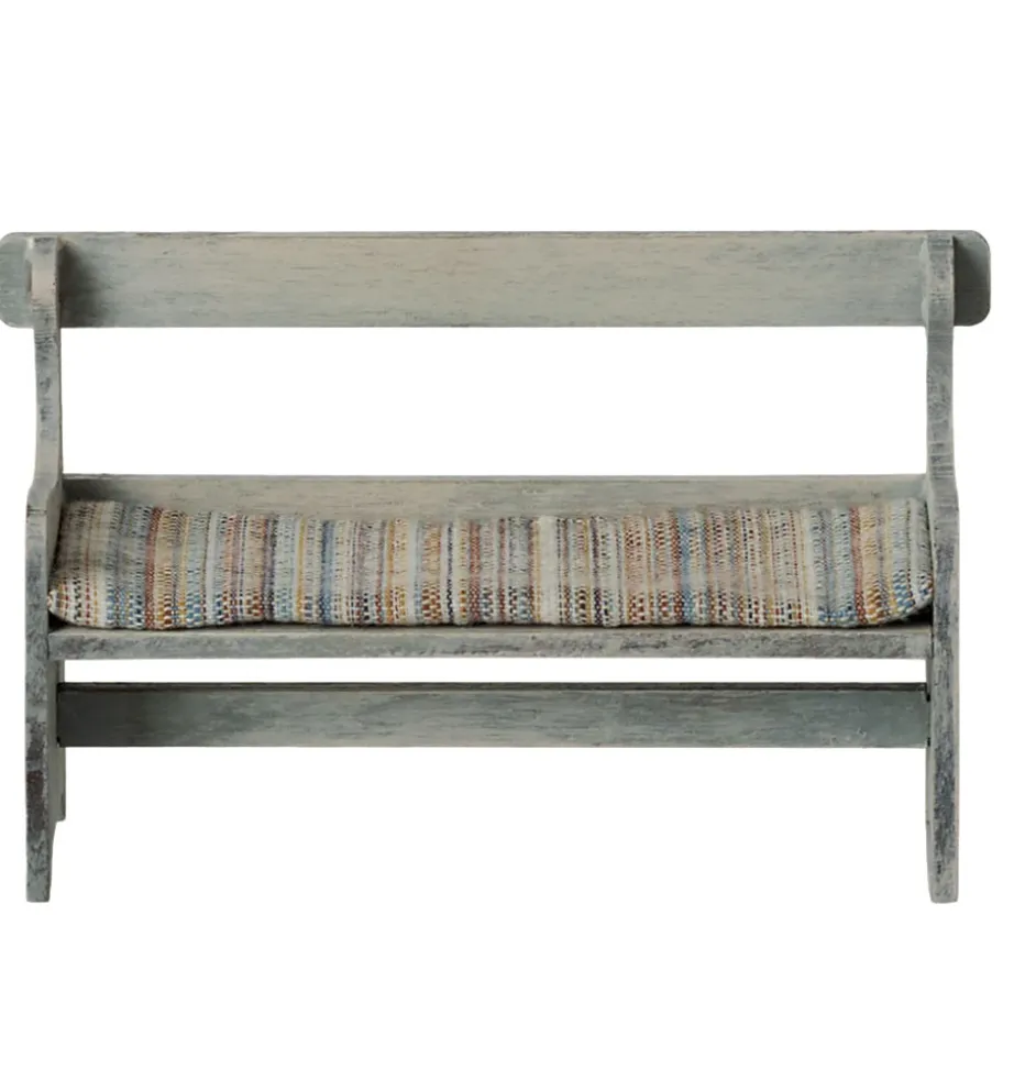 Speziell für die Maileg-Mäuse entworfen. Die Bank hat einen handbemalten Vintage-Look. Jede Bank ist ein Unikat, daher können leichte Abweichungen auftreten.