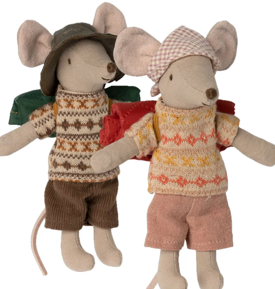 Maileg Wandermaus Großer Bruder mit Schlafsack. Diese Maus hat Magnete in den Händen.