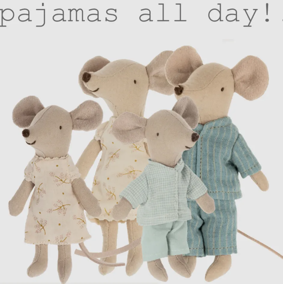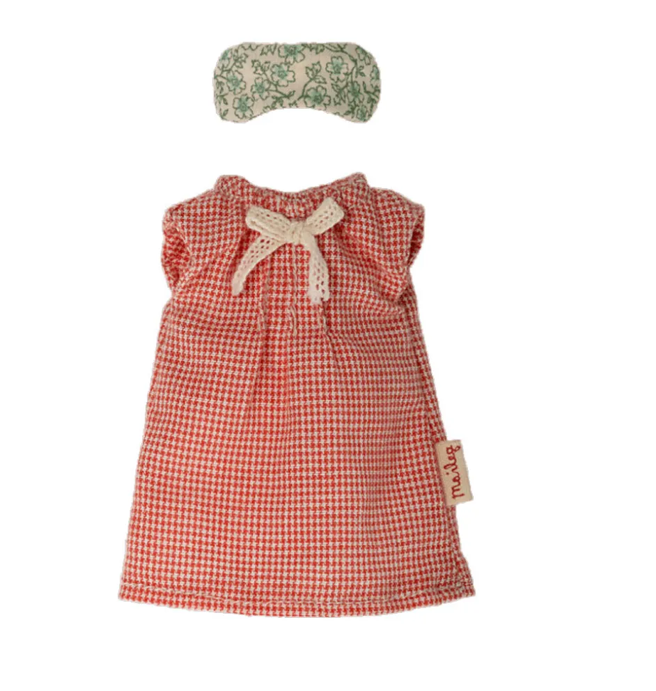 Nachtwäscheset für Maileg Muttermaus. Es enthält ein Nachthemd und eine Augenmaske. Die Maus ist nicht im Preis inbegriffen. Muttermaus kann separat in unserem Shop erworben werden.