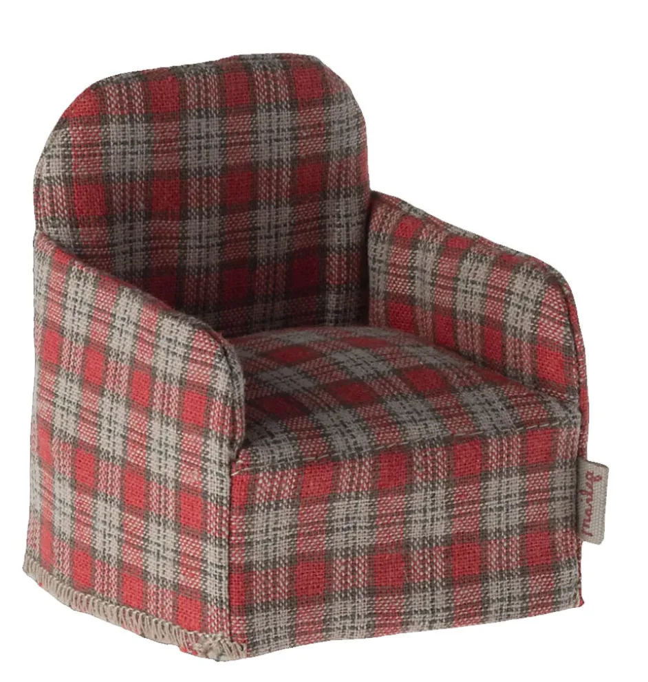 Dieser schöne Relaxsessel ist maßgeschneidert für die Maileg-Mäuse. Perfekt für das Wohnzimmer Ihres Mäusehauses. Der Stuhl wird flach verpackt geliefert und ist einfach zu montieren.