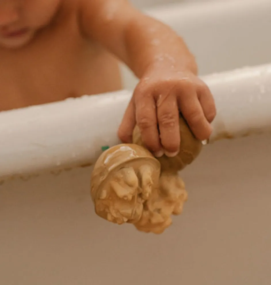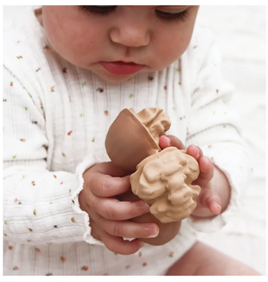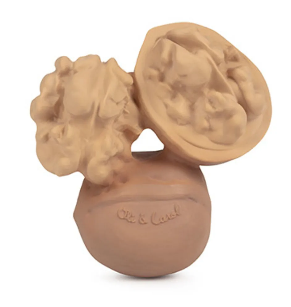 Badespielzeug und Beißspielzeug in Form einer Walnuss der spanischen Marke Oli & Carol.