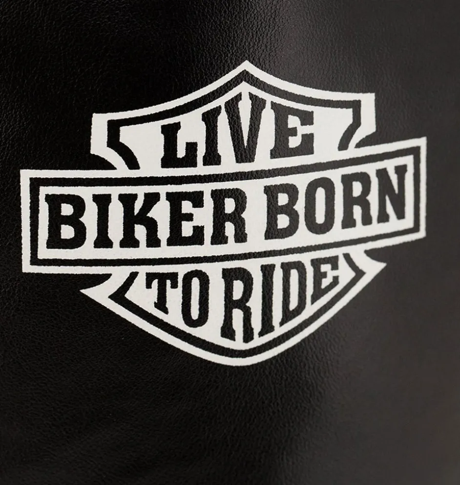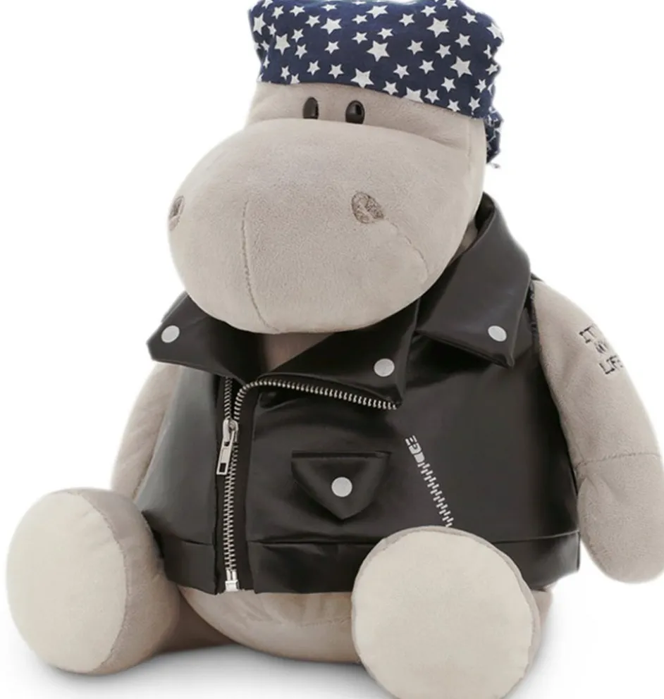 Dieses robuste Nilpferd ist ein echter Biker, komplett mit Kopftuch, Motorradlederjacke und Tattoo.