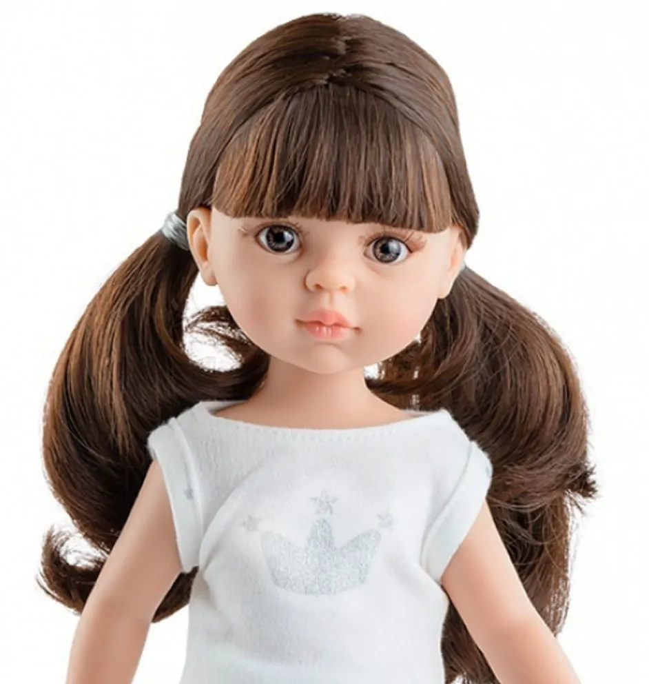 Carol ist eine Amigas-Puppe / Lasamigas-Puppe von Paola Reina. Sie ist 32 cm groß und kann alleine stehen. Sie trägt einen weißen Pyjama, bestehend aus Shorts und einem Hemd.