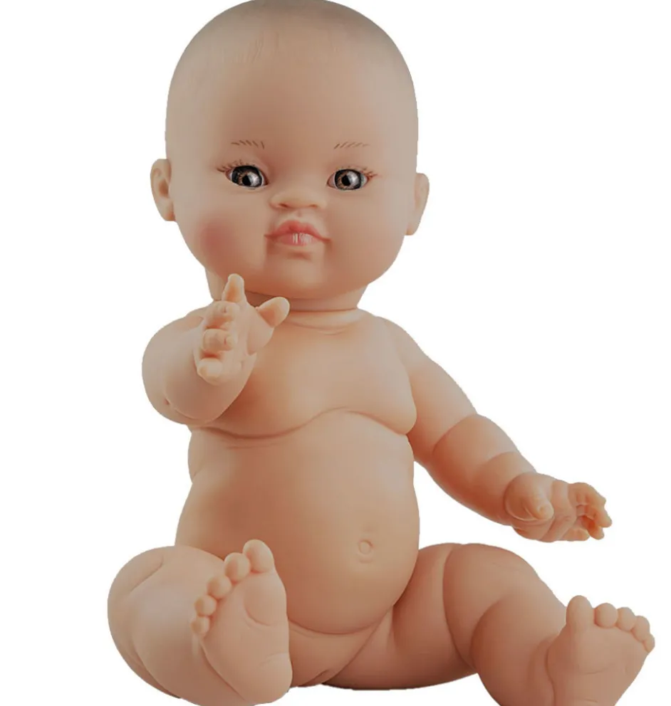 Paola Reina Gordi Mädchen Babypuppe asiatisch mit Augenbrauen und dunklen Augen.