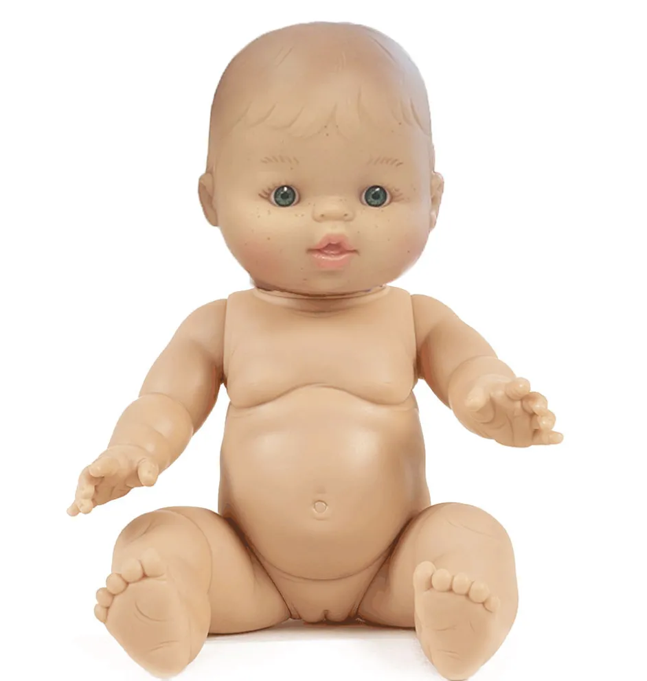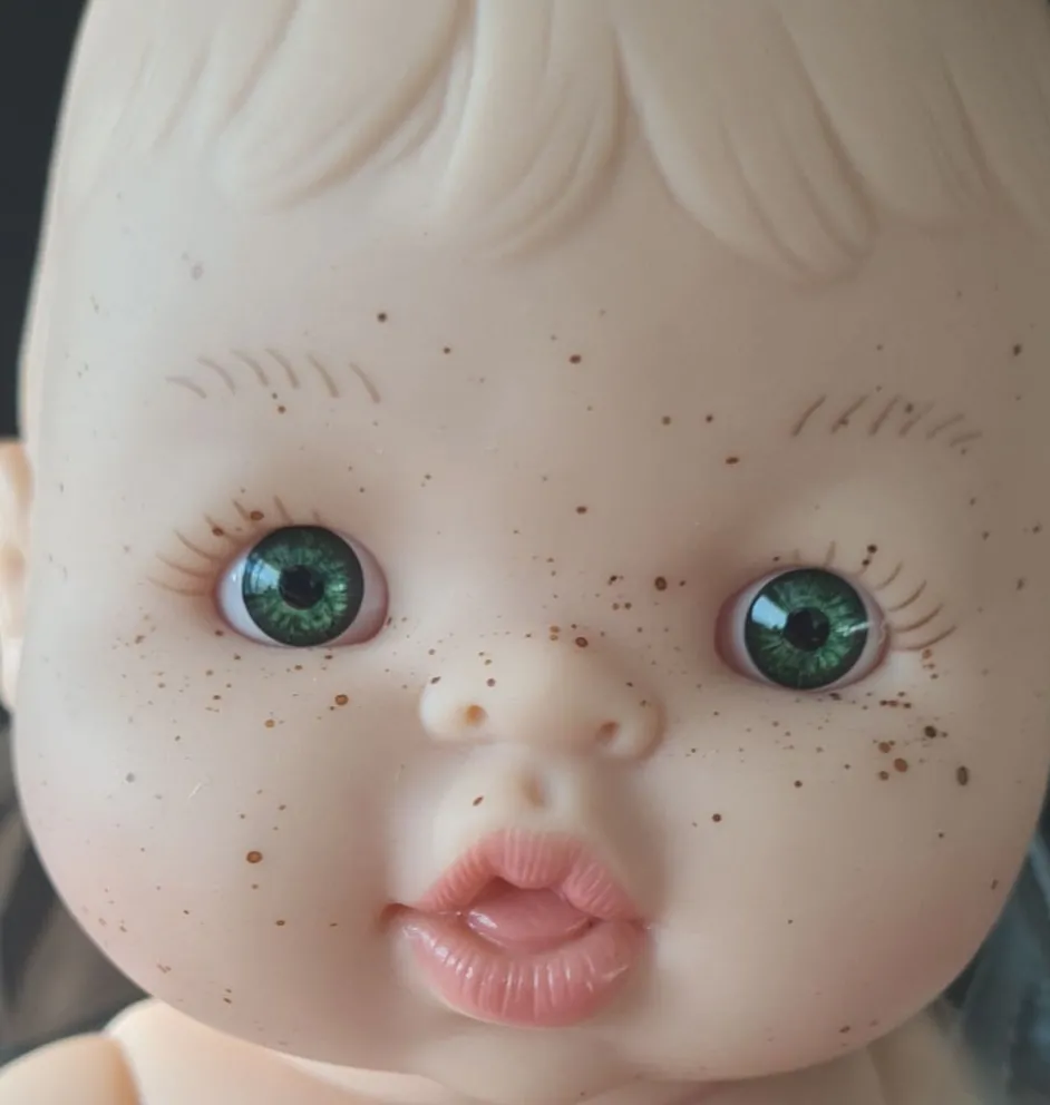 Die Sommersprossen werden in der Paola Reina-Fabrik in Spanien handbemalt. Dadurch unterscheiden sie sich je nach Puppe. Diese Puppe hat viele davon.