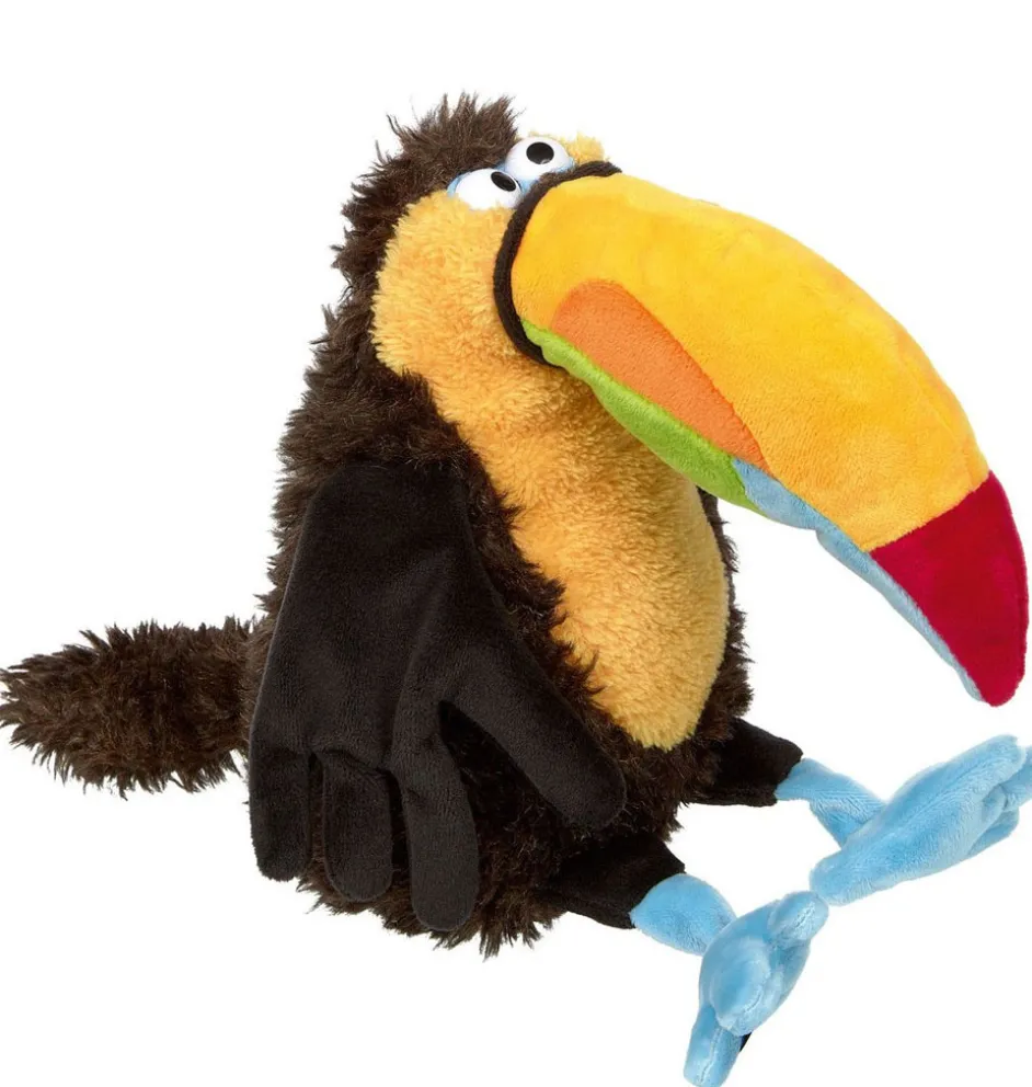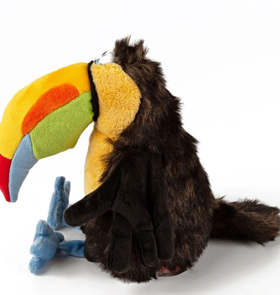 Das ist Chakka , ein Tukan von Sigikid. Dieser kuschelige Vogel ist Teil der KiKeRiKi-Kollektion. Chakka chillt gerne und ist mit seinem großen Schnabel etwas ungeschickt. Er kann mit Kindern ab 3 Jahren kuscheln. Chakka ist 24 cm groß, stilvoll, farbenfroh und sehr entspannt.