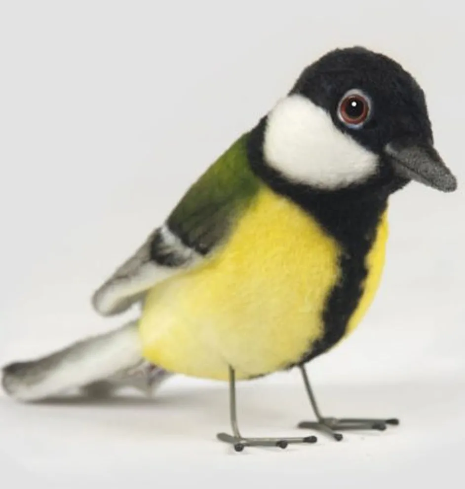 Sehr realistisch aussehende Kohlmeise von Hansa in Amerika. Dieser Vogel hat Beine aus Eisen.