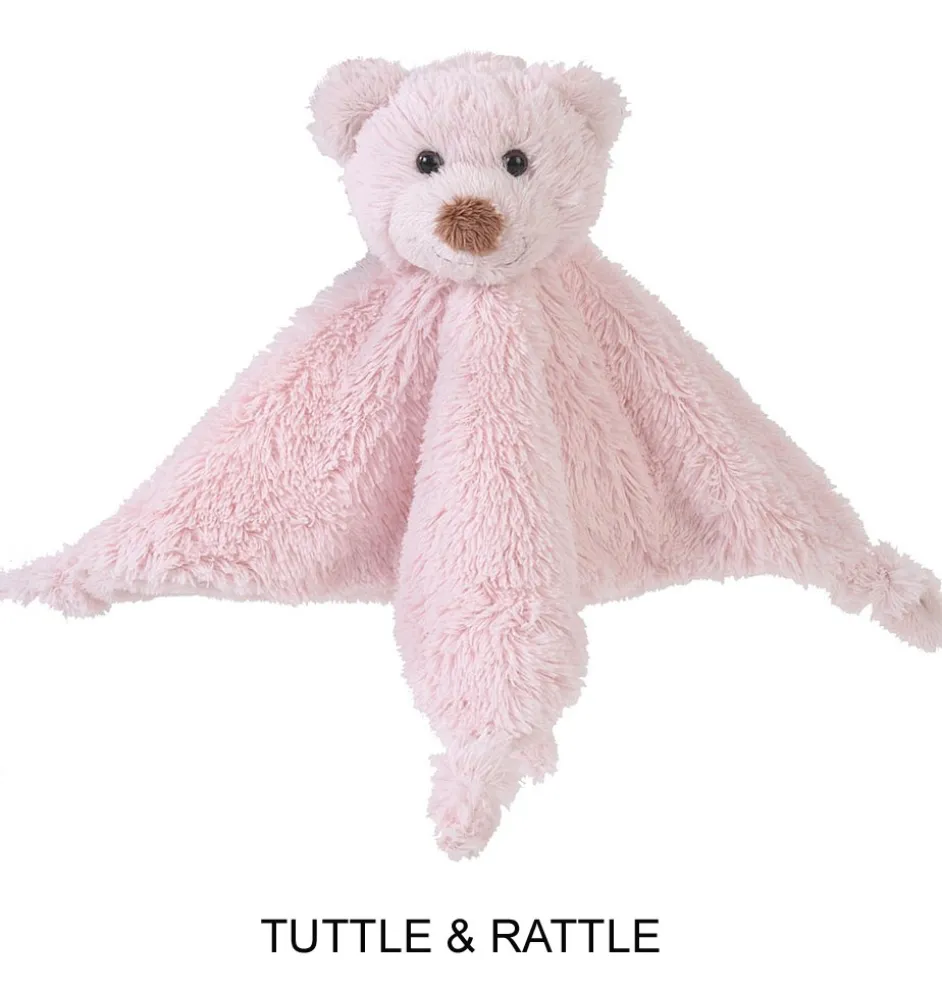 Süßer rosa Teddybär der niederländischen Marke Happy Horse. Es ist ein Kuscheltuch, aber auch eine Rassel. Superweich und bei 30 Grad waschbar. Der Bär heißt Boogy und ist ab 0 Monaten geeignet.