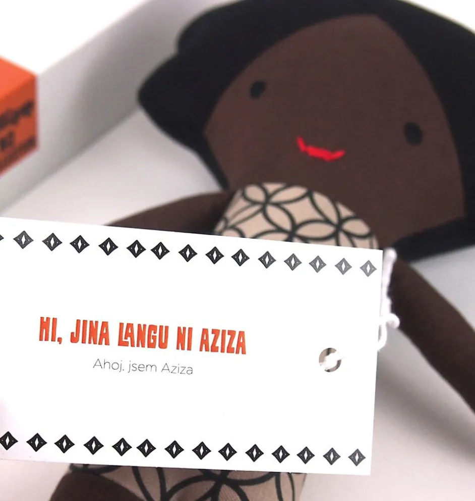 Aziza ist in einer schönen Verpackungsbox verpackt und hat ein eigenes Namensschild.