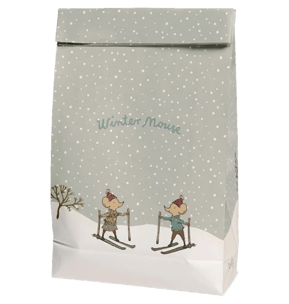 Geschenktüte aus Papier mit wunderschönen Illustrationen aus der Wintermäuse-Kollektion von Maileg.