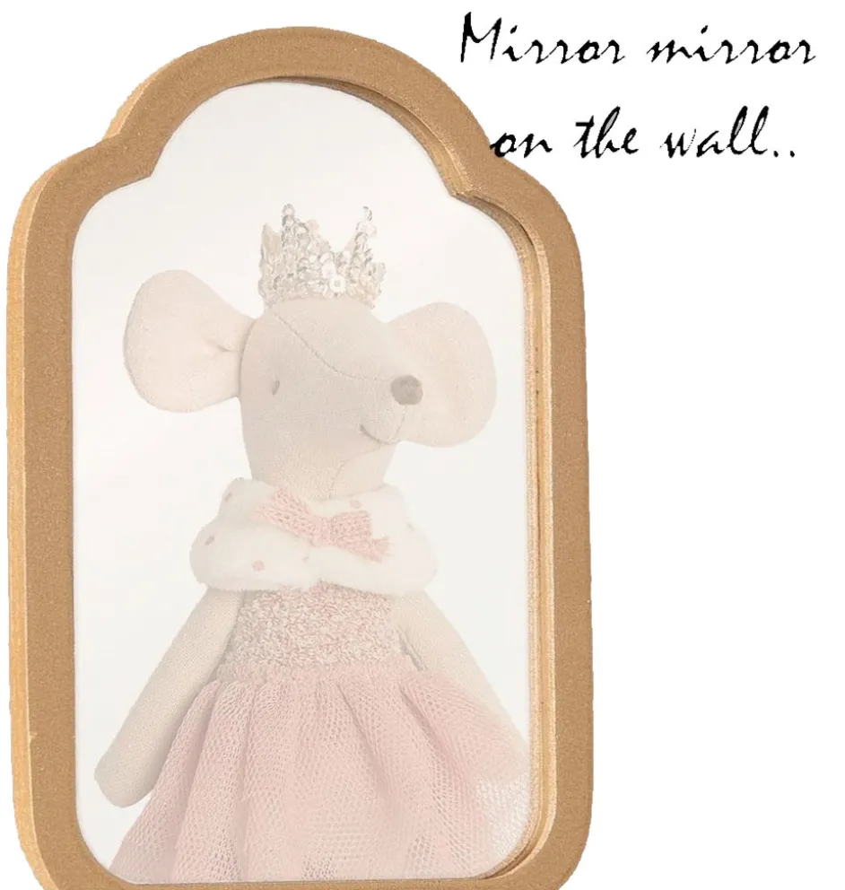 Spiegel von Maileg für das Mäusehaus oder für das Puppenhaus. Der Spiegel ist 7 x 10 cm groß und der Rahmen besteht aus Holz.
