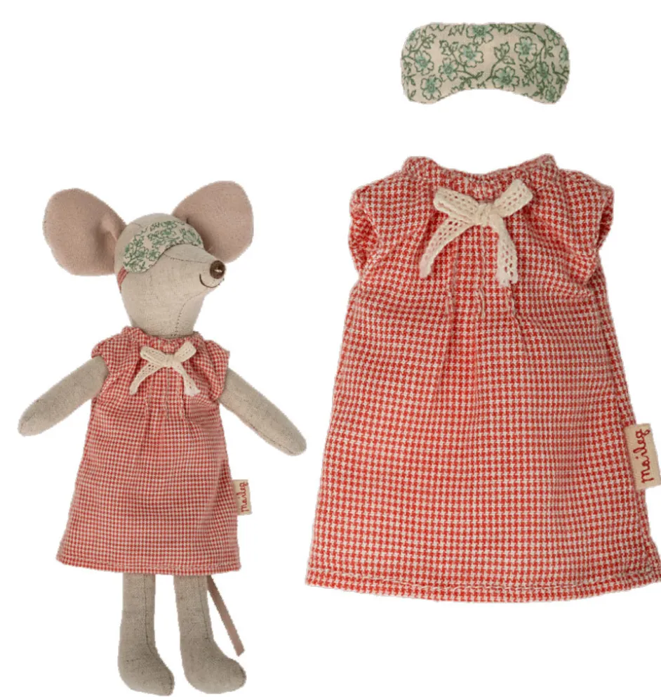 Nachtwäscheset für Maileg Muttermaus. Es enthält ein Nachthemd und eine Augenmaske. Die Maus ist nicht im Preis inbegriffen. Muttermaus kann separat in unserem Shop erworben werden.