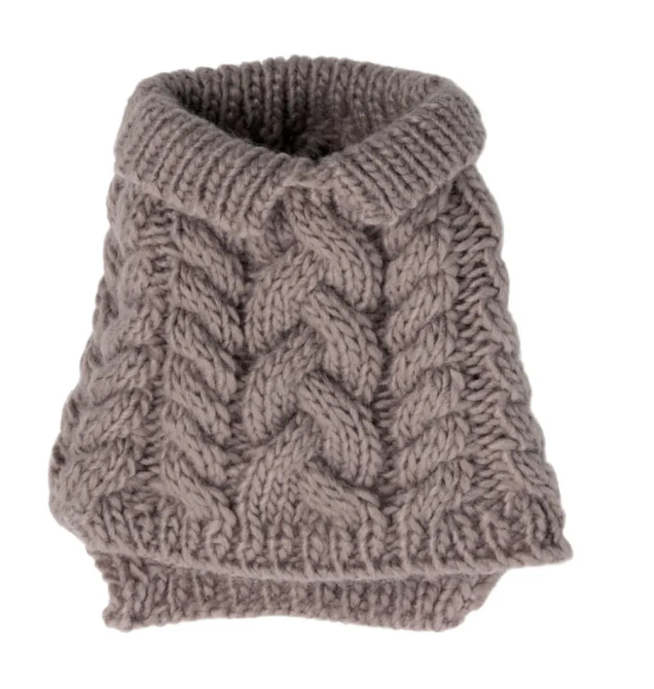 Warmer, maßgeschneiderter Pullover für Ihren Maileg-Welpen. Auf der Rückseite befindet sich ein Loch für den Schwanz des Hundes.