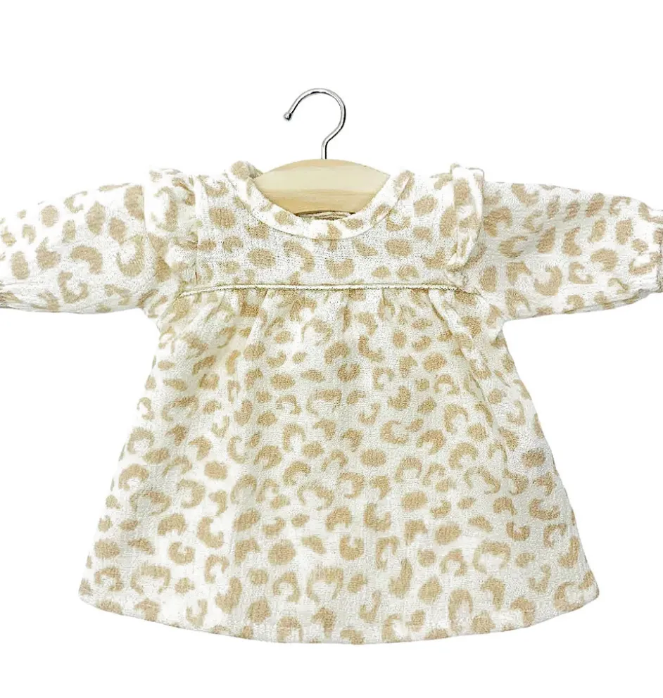 Minikane Gordi-Kleid mit Leopardenmuster Feline / Robe Mélodie aus Krepon Féline mit Lurex-Paspelierung. Speziell für die 34 und 37 cm großen Gordi-Puppen entworfen.