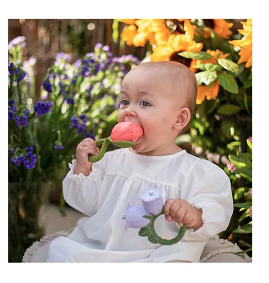 Theo Tulip ist ein Beiß- und Badespielzeug aus Naturkautschuk.