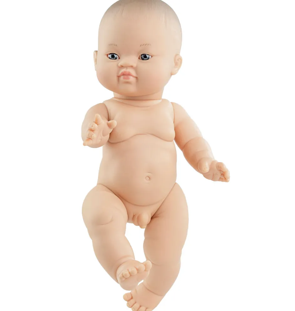Paola Reina Gordi junge asiatische Babypuppe mit hellen Augen und Augenbrauen