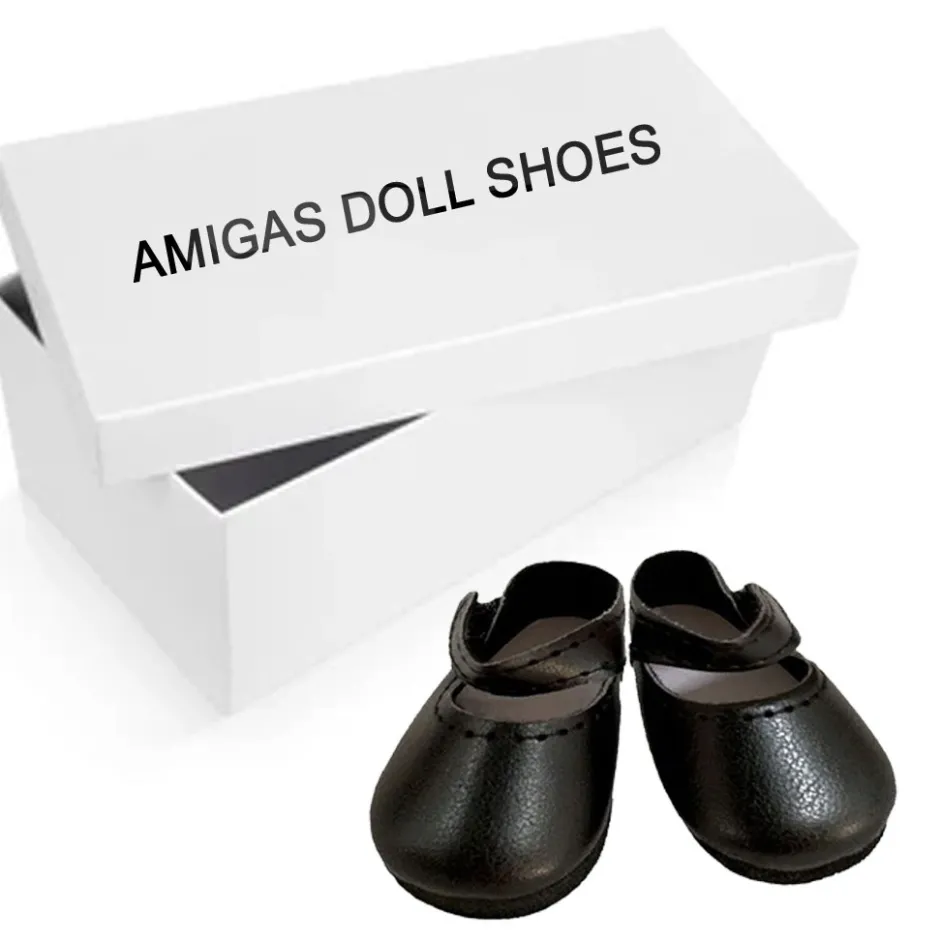 Schwarze Schuhe von Paola Reina. Die Schuhe haben einen Riemenverschluss und passen hervorragend zu den (las) Amigas-Puppen.