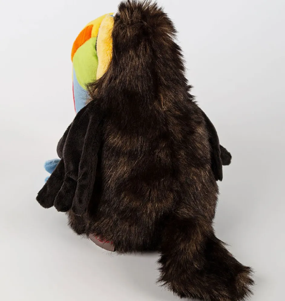 Das ist Chakka , ein Tukan von Sigikid. Dieser kuschelige Vogel ist Teil der KiKeRiKi-Kollektion. Chakka chillt gerne und ist mit seinem großen Schnabel etwas ungeschickt. Er kann mit Kindern ab 3 Jahren kuscheln. Chakka ist 24 cm groß, stilvoll, farbenfroh und sehr entspannt.