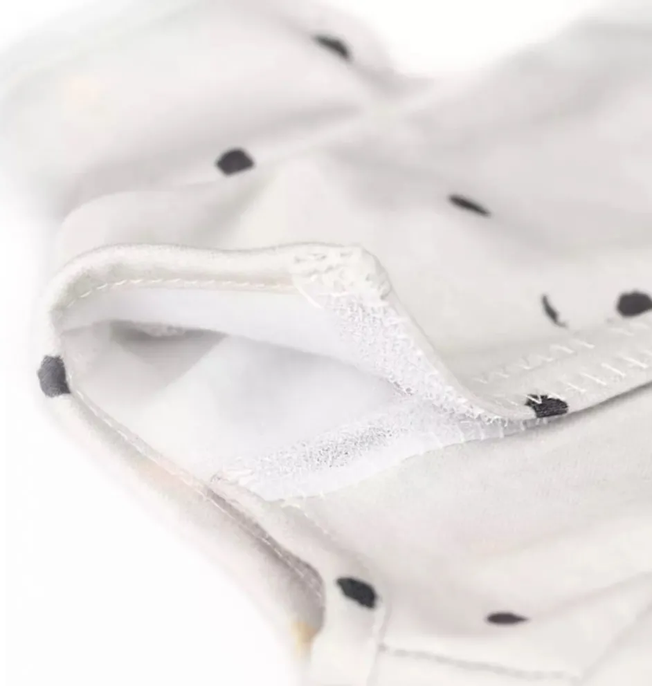 Material: weicher grauer Stoff mit Tupfenmuster