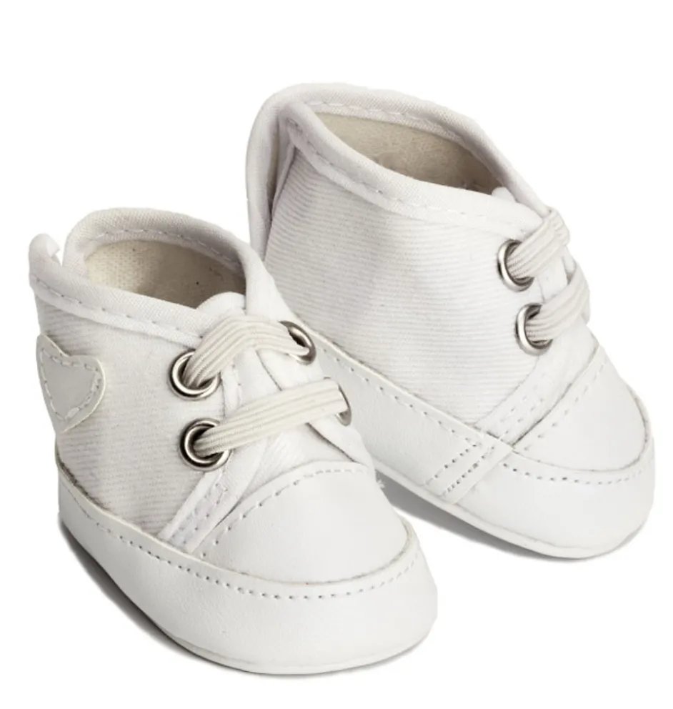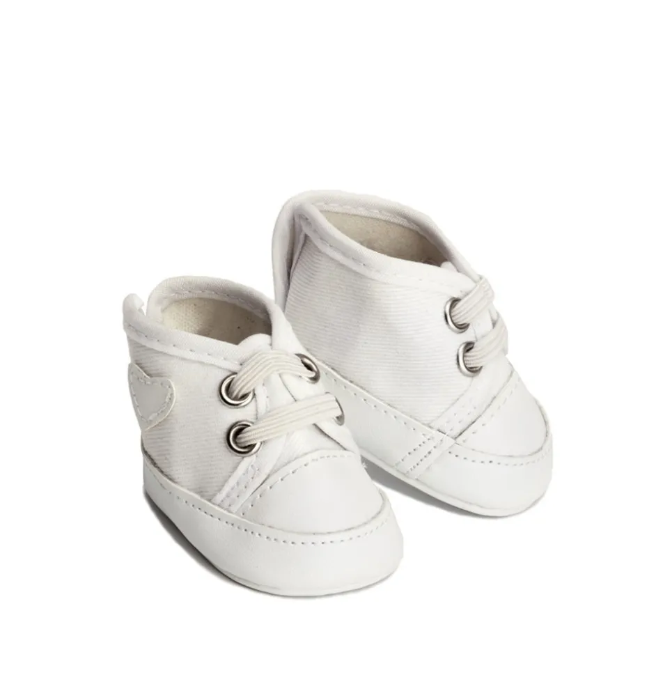 Weiße Sneaker der schwedischen Marke Skrållan. Auch für die Gordi-Puppen und die Miniland-Puppen von 38 cm geeignet.